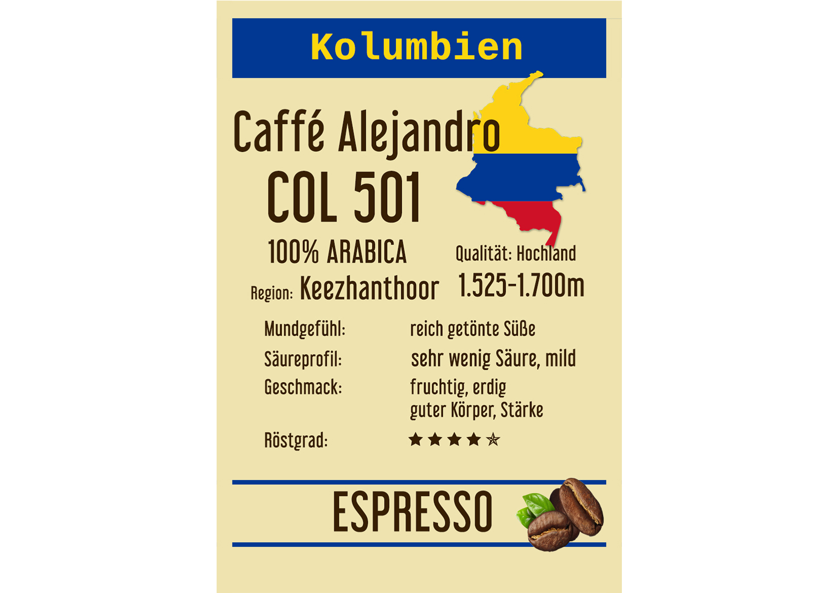 Dieser Kaffee eignet sich für alle Zubereitungsarten. Unser Kafee stammt aus der Region Nariño, welche Südwestlich in Kolumbien an der Grenze zu Ecuador liegt. Auf einer Höhe von rund 2.200 Metern wird hier unser Kaffee von mehreren Farmerfamilien kultviert und verarbeitet. Vorwiegend finden Sie hier einen süßen cremiger Geschmack mit Noten von Krokant.